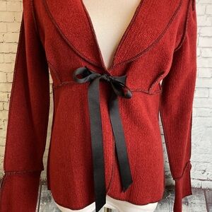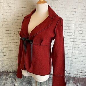 Beebop and Wally New York Retro Felt Knit Blazer Jacket Red Burgundy Ribbon Close Handmade in USA Size Medium.