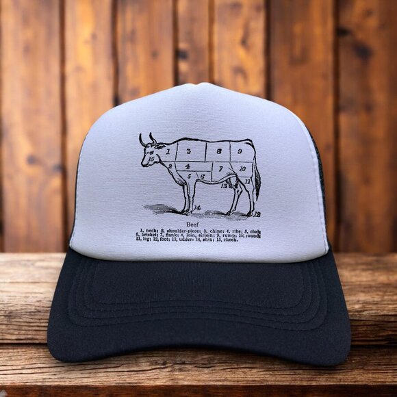 Beef Cuts Unisex Trucker Hat Black Snapback Butcher Shop Sign Baseball Cap