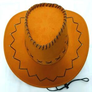 Stylish beef yellow cowboy hat featuring black stitching details. Perfect for a western look.May arrive with slight wrinkle and shape while in shipment but can easily be bent back into shape or steamed.