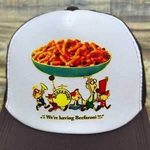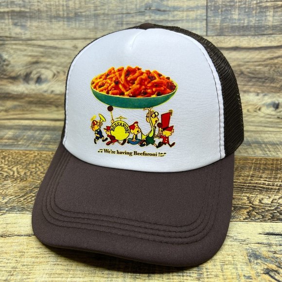 Beefaroni Mens Trucker Hat Brown Snapback Vintage Spaghetti Ad 50s Retro Cap
