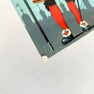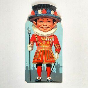 This vintage British Beefeater Yeoman Guard diecut postcard by Colourmaster International is a 1960s-70s travel souvenir treat. Its unique design and classic London theme make it a collector's treasure.