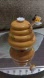 beehive honeycomb jar ceramic yellow mustard with white flowered handle and Bumble Bee wood dipper. measures 3 1/4 in tall by 3 in wide. new never used no cracks or chips.