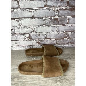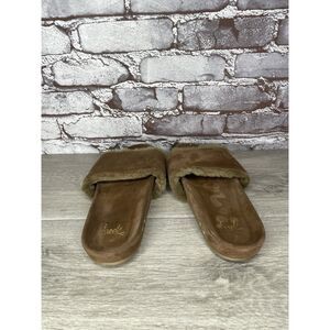 Beek Brown Sherpa Lining Brown Suede Leather Slides Sandals Women Sz 10M US/41EU