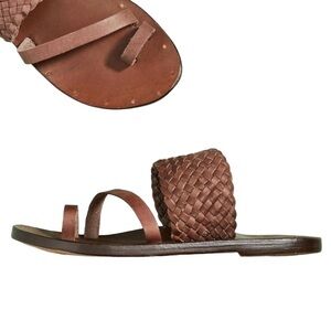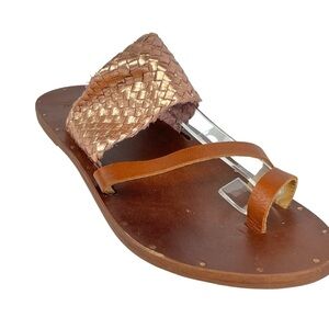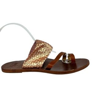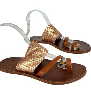 Beek Cockatiel Woven All Leather Slide Sandals Women 6 in Rose Gold Brown NWOB