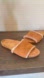 Soft tan suede slides with cozy lining. Ideal for everyday comfort.