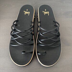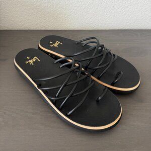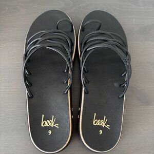 Beek | NWOT Black Leather Strappy Flat Sandals size 9