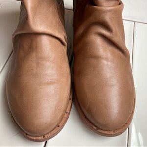 Beek Ostrich Slouch Saddle Boots Sz 8.5 Caramel