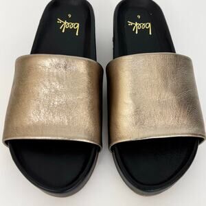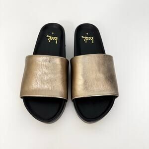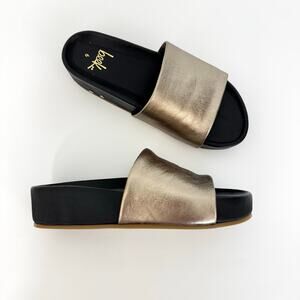 Beek Pelican Leather Platform Slides Sandals in Bronze Black Size 6