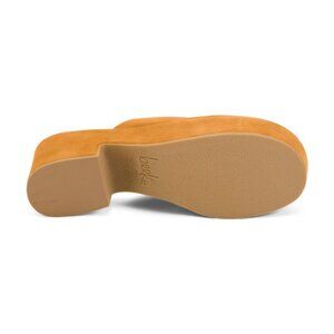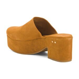 Beek Petrel Heeled Platform Clogs in Caramel Suede