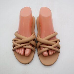 Beek Puffback Flat Sandal Women's Size 9 Crisscross Slides Slip On Sandals Beige