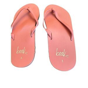 Beek Seabird Flip Flops Flamingo Pink Leather Sandals Sz 6 | Handmade in Mexico