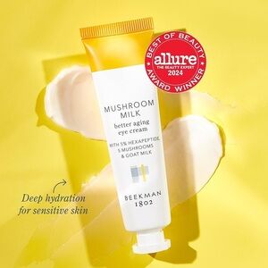 Give your eyes a lift with Beekman 1802 Mushroom Milk Wrinkle-Smoothing Eye Cream. Infused with 5% hexapeptide, 5 mushrooms, and goat milk, this formula helps smooth crow’s feet, minimize fine lines, and firm the delicate under-eye area.