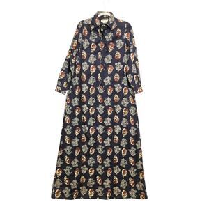 Beene Bazaar Vintage 70's Geoffrey Beene Maxi Pullover Shirt Dress Dark Floral