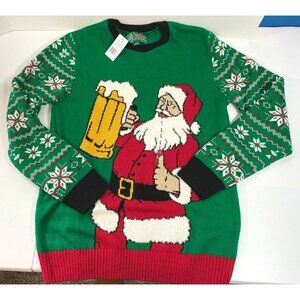 Beer Drinking Santa Ugly Christmas Sweater Mens Size Large NWT Green Snowflakes