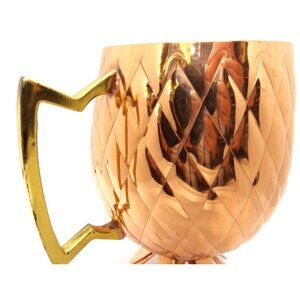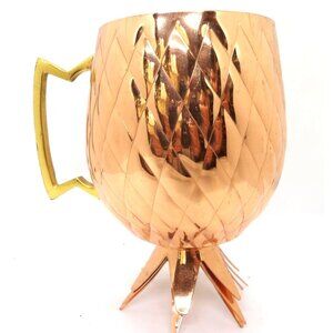 Beer Mug footed Hammered Stainless Steel Copper Colored with Brass Handle NEW
