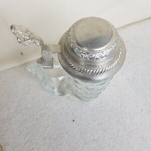 Beer Stein Vtg 1960's Hobnail Glass & Pewter Viking Made In Germany