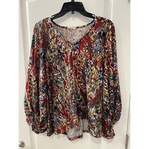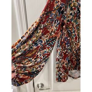 Beeson River Mixed Print Ted Green Long Balloon Sleeve V Neck Top Women Size M