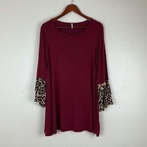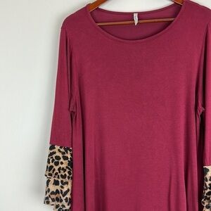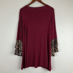 Beeson River Woman's Tunic Top 1X Tiered Sleeve with Cheetah Accent Crew Neck