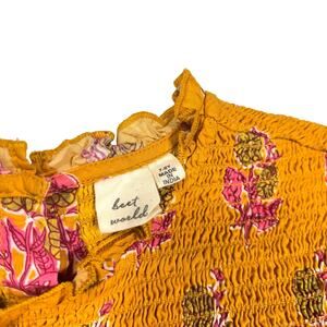 Beet World Girls Dress Size 7-8Y Yellow Pink Floral Smocked Long Sleeve Boho