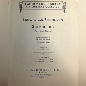 Beethoven Sonatas for the Piano, Book 1" from Schirmer's Library of Music