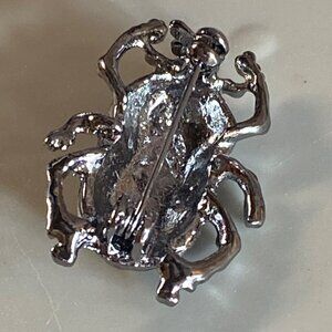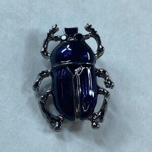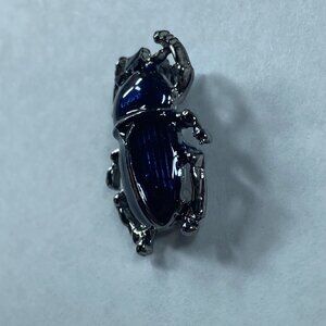 A unique silver and blue color beetle bug brooch. This metal pin adds a touch of whimsy and color to any outfit. It's a perfect gift for bug enthusiasts or nature lovers. Unbranded.
