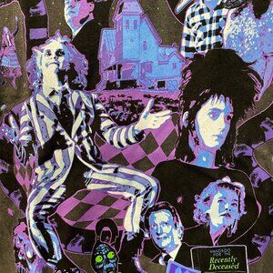 Beetlejuice Collage Illustration Graphic Design T-Shirt Medium. Generally measures 19 inches pit to pit and 28 inches Long. Amazing shirt, perfect for beetlejuice fans. New never worn overstock in great condition. No tag.