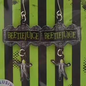 Beetlejuice Dangle Earrings Antique Silver Neon Green