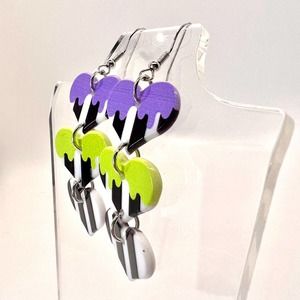 Beetlejuice Earrings - Halloween Earrings - Goth Earrings - Heart Earrings