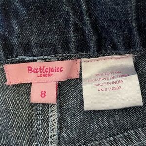 Beetlejuice London Flare Jeans Girls Size 8 Blue Dark Wash Denim Embroidered