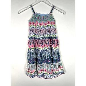 Beetlejuice London Girl's Flower Applique Floral Sundress Size 6 Tiered Fringe Cotton