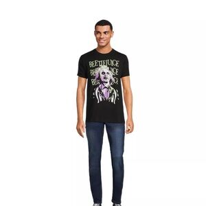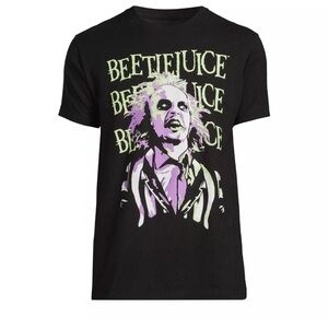 Show off your style with this Beetlejuice graphic T-shirt. Featuring a bold design on a classic black background, this shirt is perfect for fans and fashion enthusiasts alike.