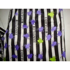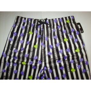 Beetlejuice Men's Minky Fleece Sleep Pajama Pants Black White Stripe w/Beetles L