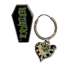 Beetlejuice Striped Sandworm Hoop Charm & Coffin Stud Metal Earrings Signed WBEI