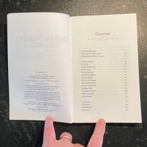 "Before Sunday: The Life and Stories of the Bloody Sunday Victims," by Jennifer Faus. This 2007 Nonsuch Publishing first edition paperback condition borders on Like New except for minor staining on outside page edges. Clean pages, tight binding, no creases in spine, no marks or markings, no stickers or sticker goo, solid front and rear covers, no bends or tears. Minimal shelf wear.