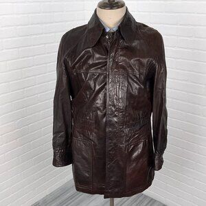 Beged-Or Coat Mens 40 Dark Brown Leather Patent 70s Coat Israel Vintage Jacket