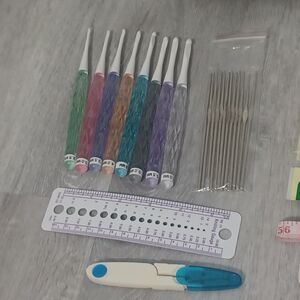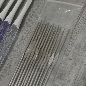 13x Aluminum lace crochet hooks, ranging from 0.6mm to 1.9mm