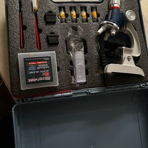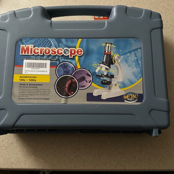 Explore the microscopic world with this blue microscope set. Comes in a sturdy case for easy storage and transport.