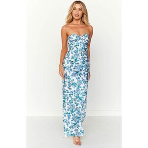 Beginning Boutique Ashley Floral Formal Strapless Maxi Dress Blue Size 4