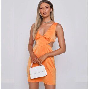 Beginning Boutique Vargas Orange Satin Cut Out Mini Dress, US 2 AU 6 NWT