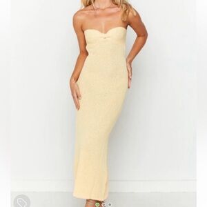 Beginning Boutique Yellow Knit Strapless Midi Dress