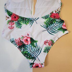 Begonia.K Tropical Print Deep V-Neck Criss Cross Floral One Piece Swimsuit NEW