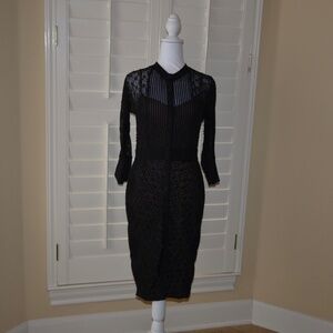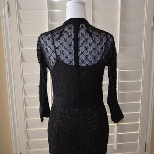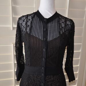 Black Color. Lace Accents. Button Down. Fully Lined 3/4 Length Sleeves. US Size 4. Dry Clean Only. No Flaws or Stains.