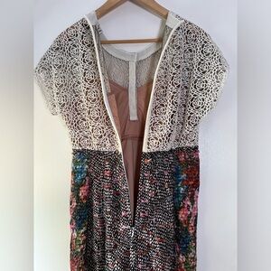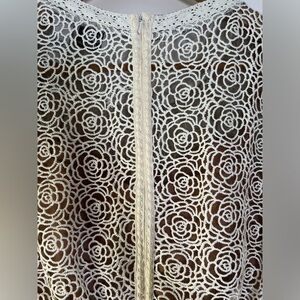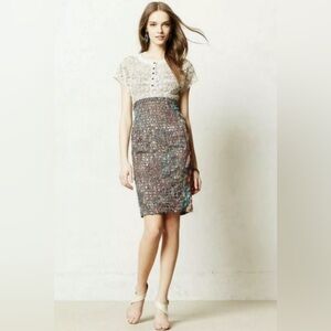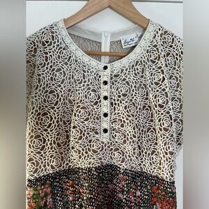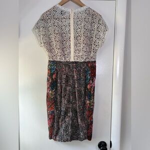 Beguile by Byron Lars Lace Study Sheath Dress Sz 6 Button Front Ivory Black Pink
