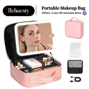 Behaesty Travel Makeup case w/ Rechargeable LED Mirror