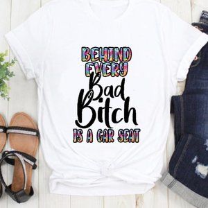 Behind every bad Bitch is a car seat T-Shirt. Graphic Unisex Classic. This tshirt is 100% Polyester. Prices are firm we make these tshirts in house, with a process called sublimation. We use a special printer, special ink and special paper to create each design. We then press the ink directly into the fabric. This tshirt will never peel or fade like other tshirts have in the past. We do not accecpt offers due to the quality of this item.