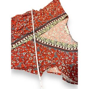 Behop Damask Floral Bohemian Maxi V-neck Dress Women's Red M