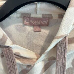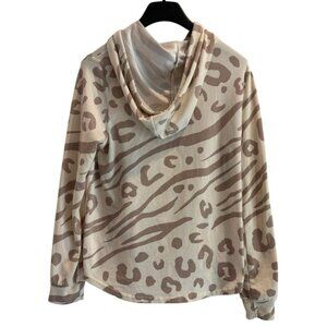 Beige Animal Print Brushed Hoodie – Cozy Pullover Sweatshirt Women’s M