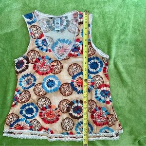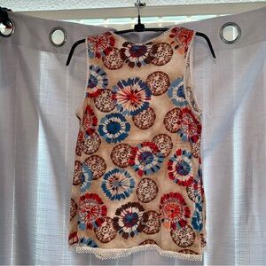 Beige Background with Popping Flowers Sleeveless Top size Large