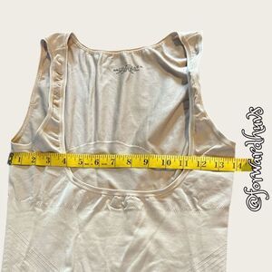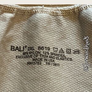 This Bali shapewear camisole in size 2X is designed to smooth and shape the body, providing a streamlined silhouette under any outfit. Crafted in a neutral beige tone, the camisole features a seamless design, a flattering scoop neckline, and wide straps for added comfort.