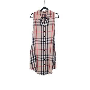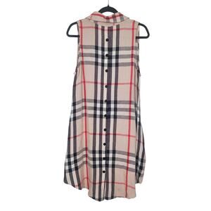 Beige Black RedCheck Dress Sz 4/6 Sz S sleevless w/pockets linen rayon buttons
